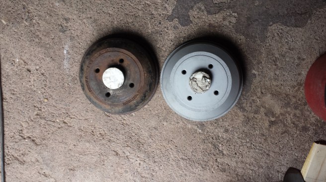 Bremstrommel in Signalgelb pulverbeschichtet