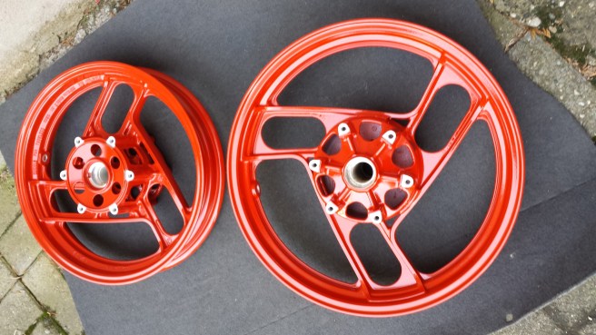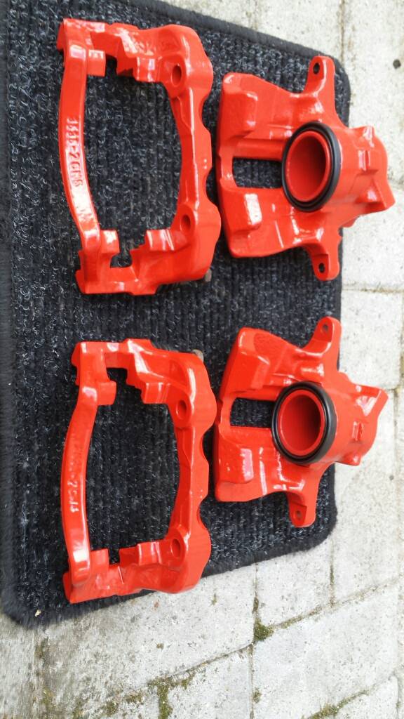 Bremssättel in Feuerrot beschichtet